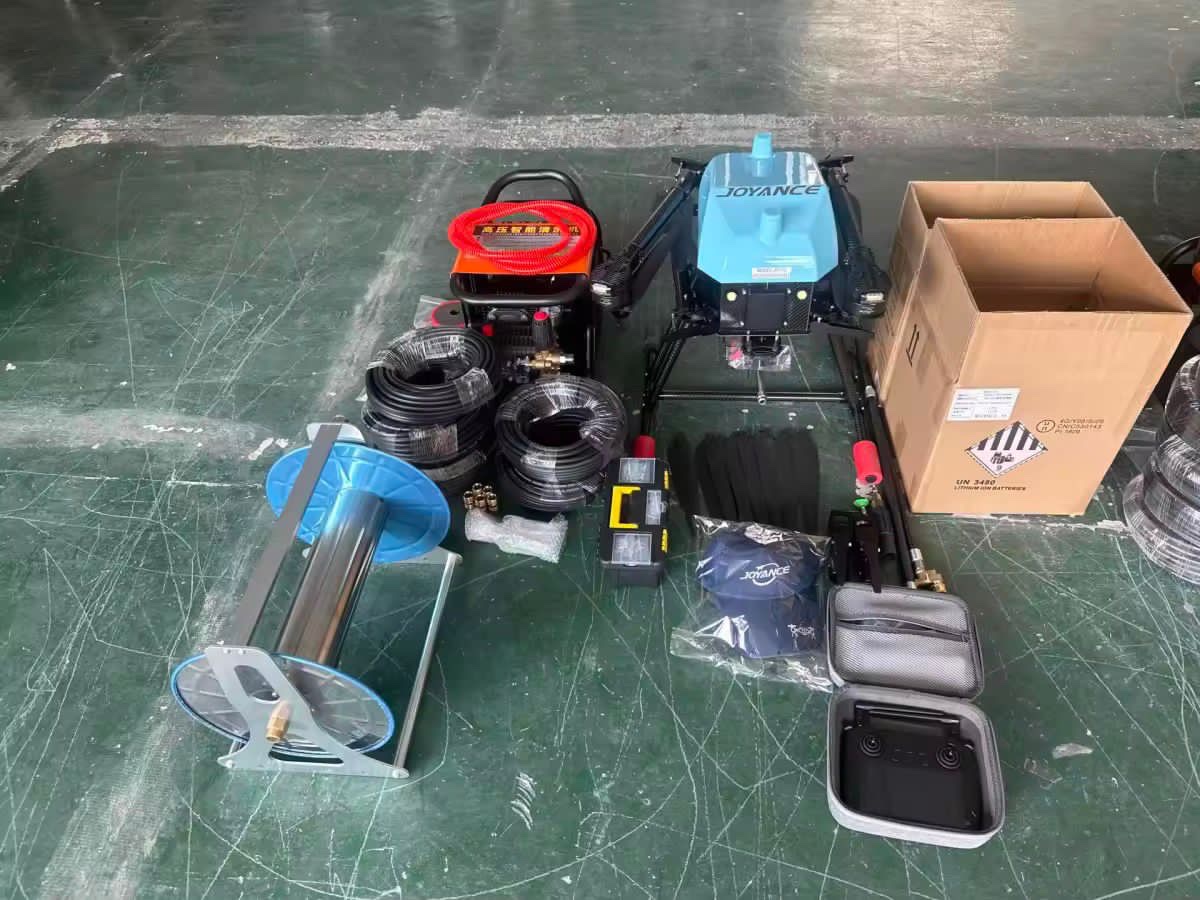 🚁 Aerial Precision Cleaning: Uses high-pressure air and adjustable spray jets to remove dust, dirt, and debris from tall buildings, solar panels, and glass surfaces.